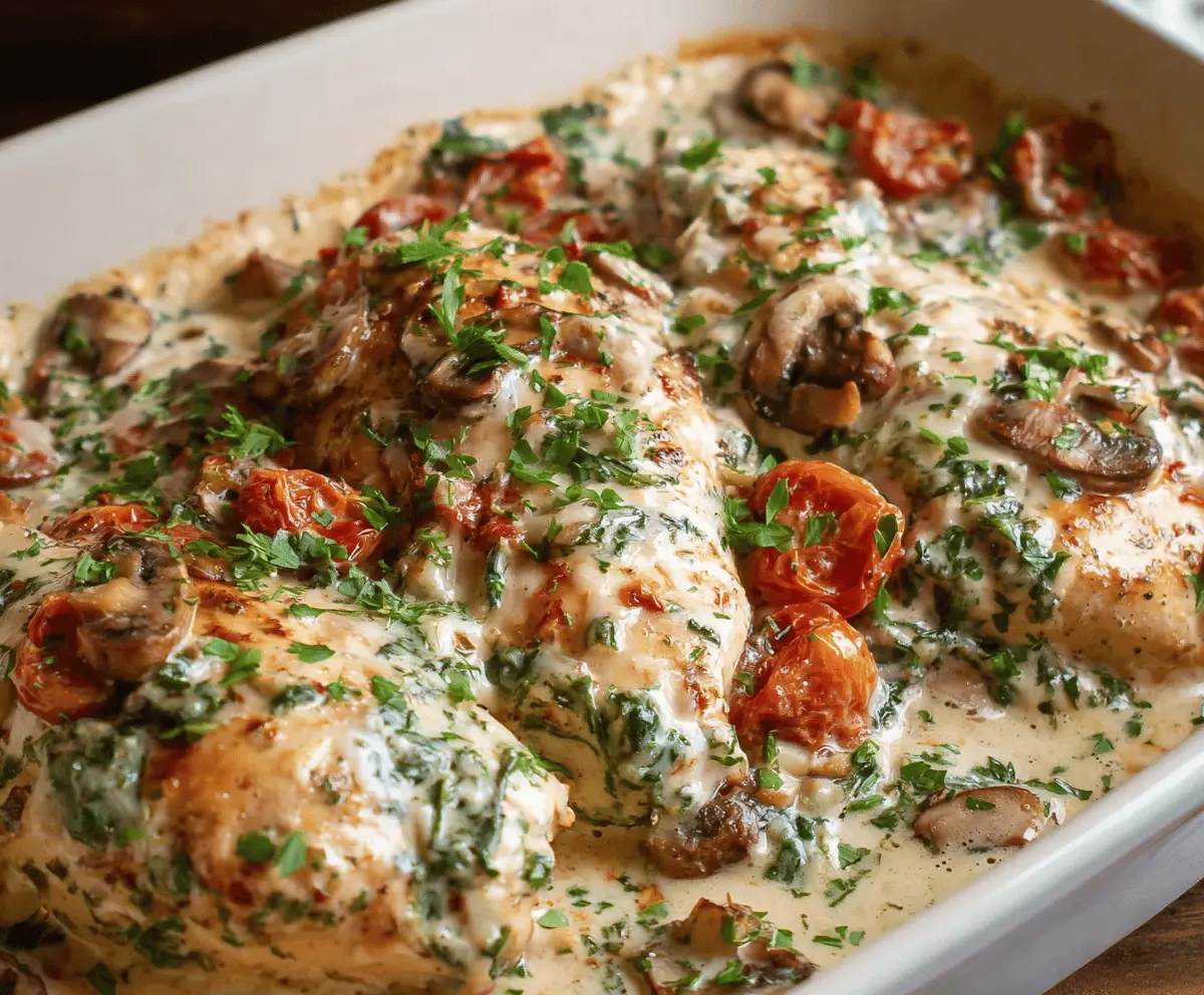 Baked Tuscan Chicken Casserole is a comforting dish packed with juicy chicken, creamy sauce, sun-dried tomatoes, and fresh spinach. It’s one of those meals that feels like a warm hug on a plate, with tender, flavorful bites that come together beautifully once baked.
