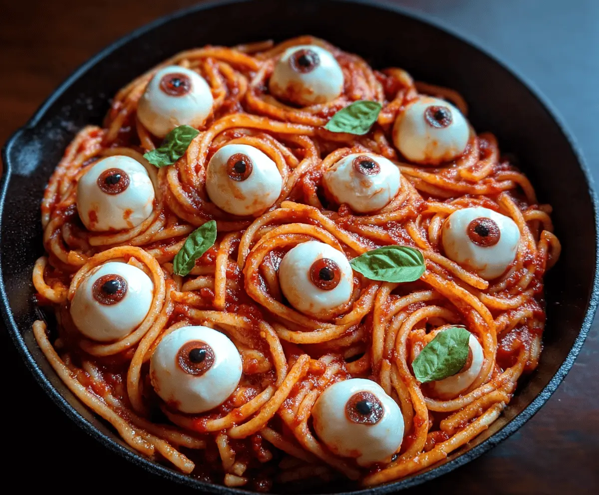 Bloody Spaghetti with Mozzarella Eyeballs is a fun and spooky twist on a classic spaghetti dish. Imagine a plate full of rich, red tomato sauce that looks like it’s dripping right off the noodles, with little mozzarella balls popping out like eyes staring up at you. It’s both a little creepy and totally delicious, perfect for a Halloween night or any time you want to add some playful flair to dinner.