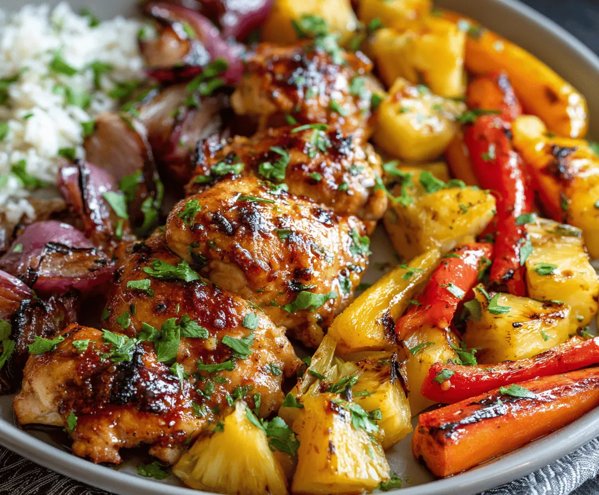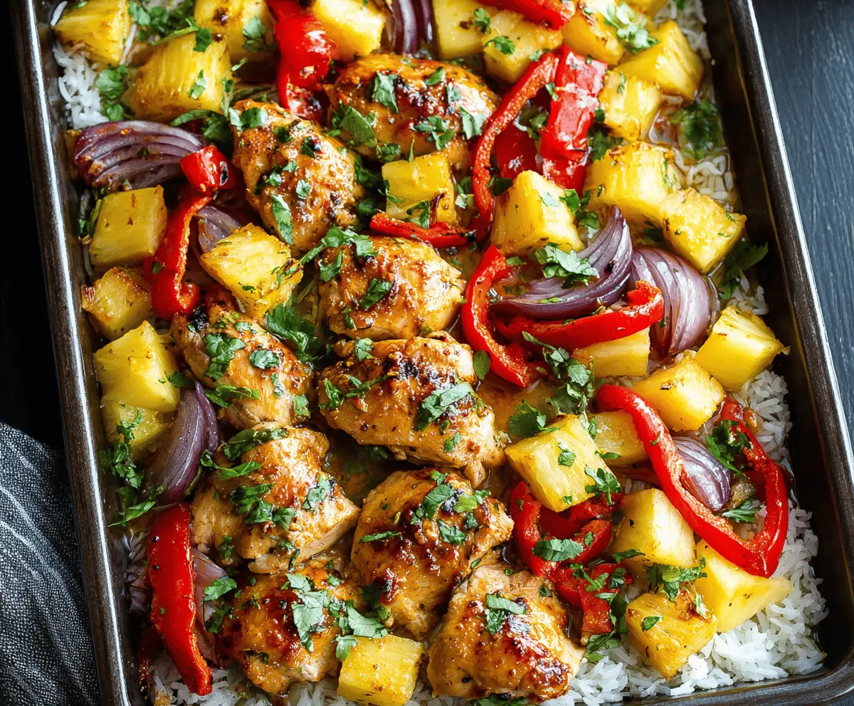 Hawaiian Chicken Sheet Pan is a simple, colorful dinner that brings a little island vibe to your weeknight. Juicy chicken thighs get roasted alongside sweet pineapple chunks, bell peppers, and onions, all coated in a tangy, slightly sweet sauce. The mix of tender chicken and caramelized fruit makes every bite feel like a mini vacation.