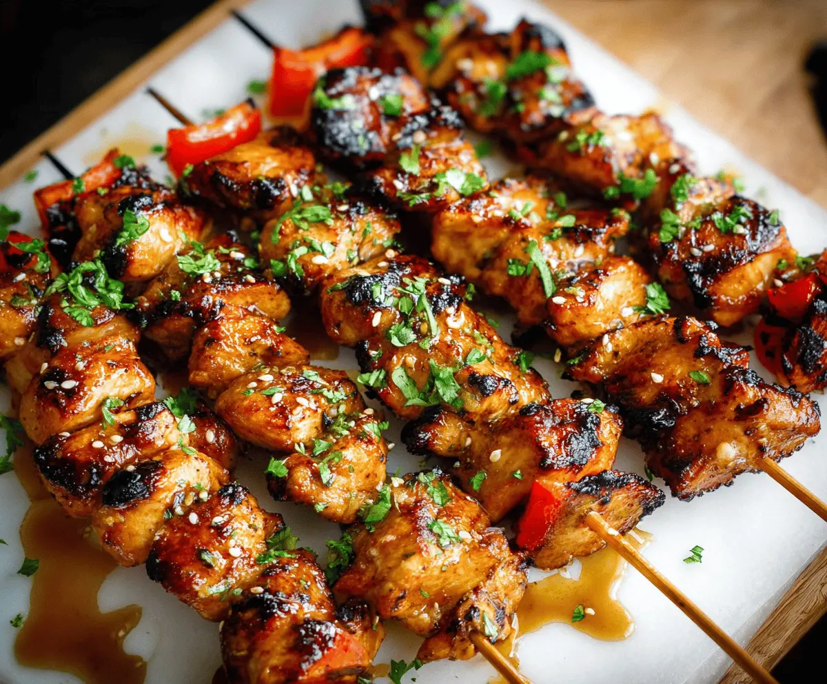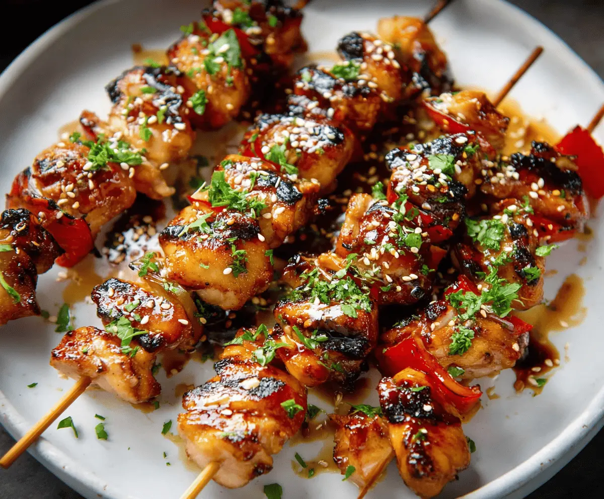 Honey Garlic Chicken Skewers are a simple and tasty dish featuring tender pieces of chicken glazed with a sweet and garlicky sauce. The honey adds a nice touch of sweetness that balances perfectly with the savory garlic, making every bite full of flavor. The skewers are great for grilling or baking, and they look as good as they taste with their nice golden-brown glaze.
