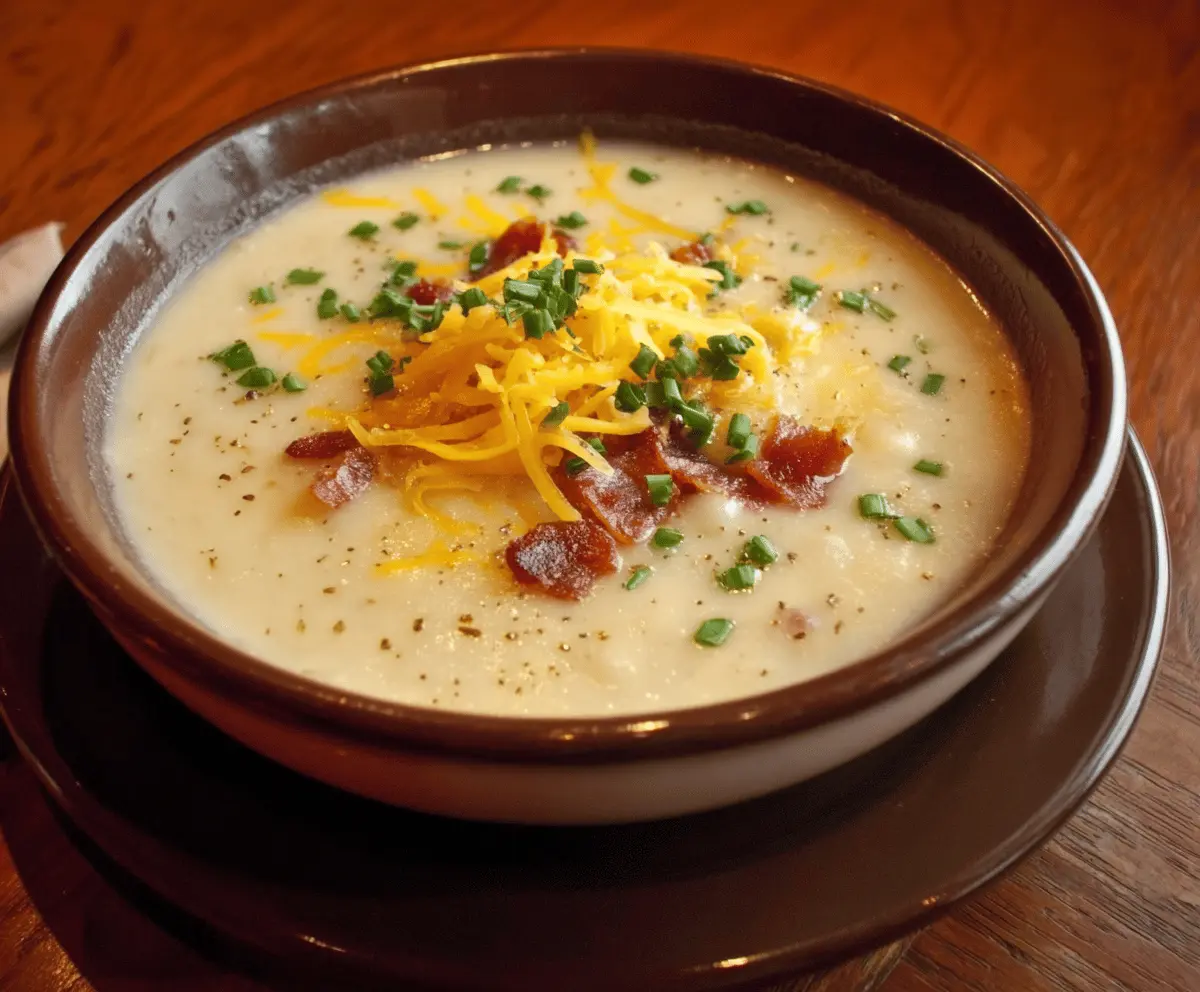 Outback Steakhouse Potato Soup is a creamy and comforting bowl filled with tender potatoes, crispy bacon bits, shredded cheese, and fresh green onions. It’s the kind of soup that feels like a warm hug on a chilly day, with just the right balance of flavors and a smooth, hearty texture that really sticks to your ribs.