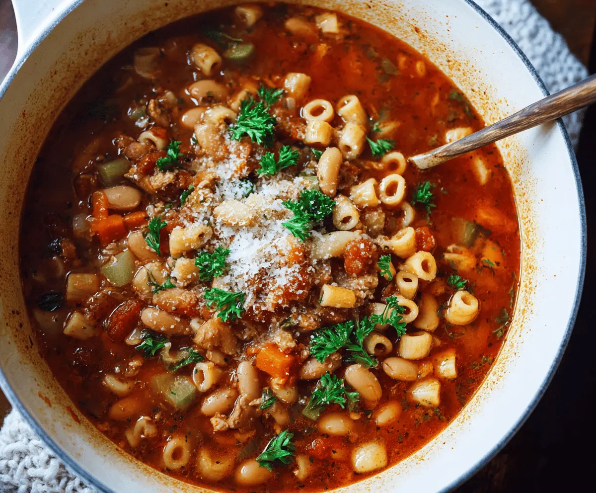 Pasta Fagioli is a classic Italian soup that’s like a warm hug in a bowl. It combines tender pasta, creamy beans, and hearty vegetables simmered in a flavorful broth. The mix of soft beans and al dente pasta with herbs and a touch of tomato makes it both comforting and satisfying.