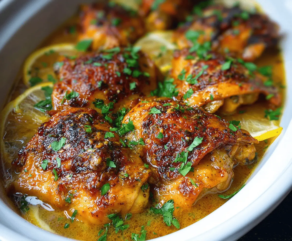 Enjoy your delicious and tender slow cooker chicken thighs with a fresh lemony twist!