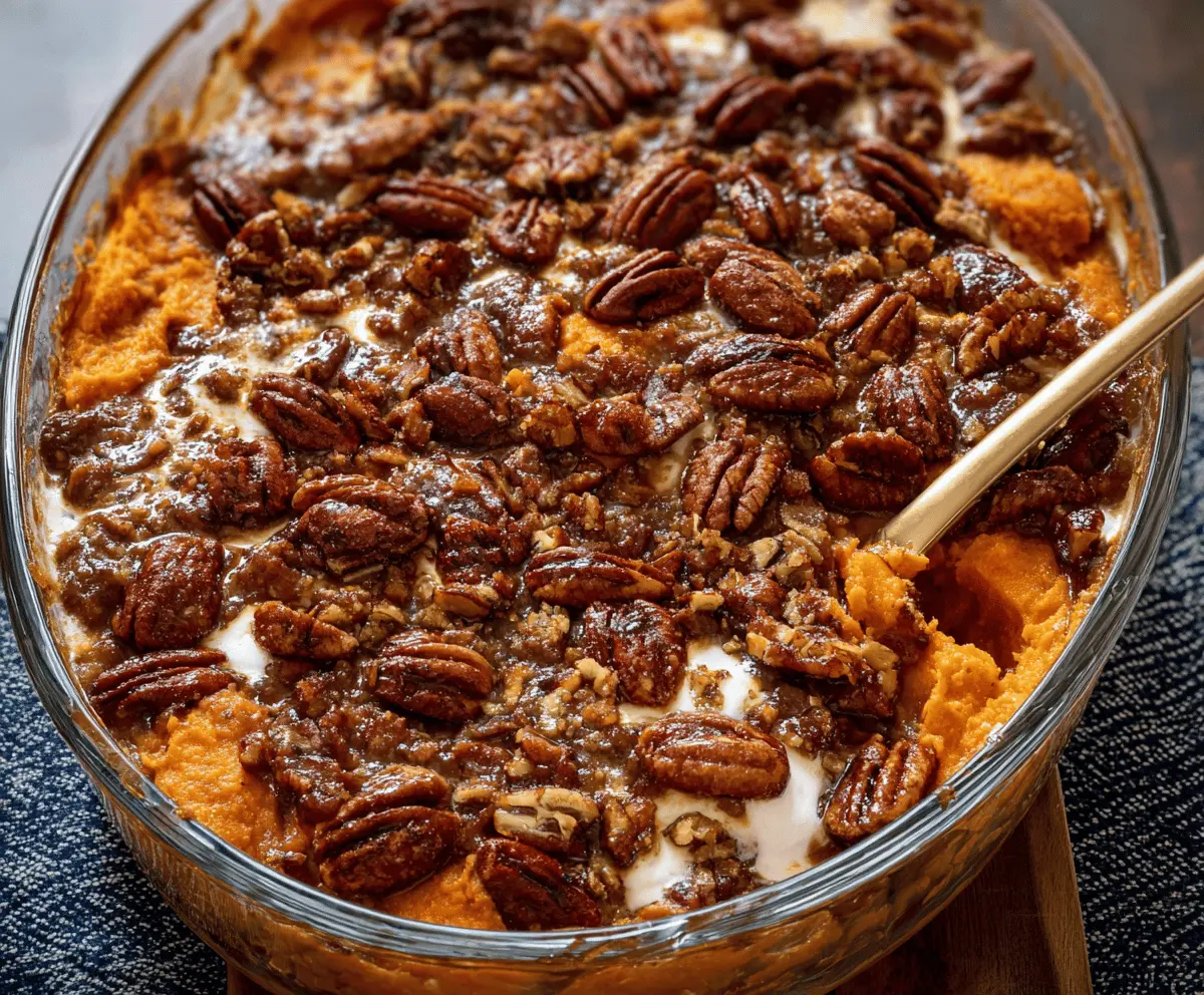 Enjoy the cozy blend of warm maple, creamy sweet potatoes, and crunchy pecans—a perfect dish for family dinners or holiday celebrations!