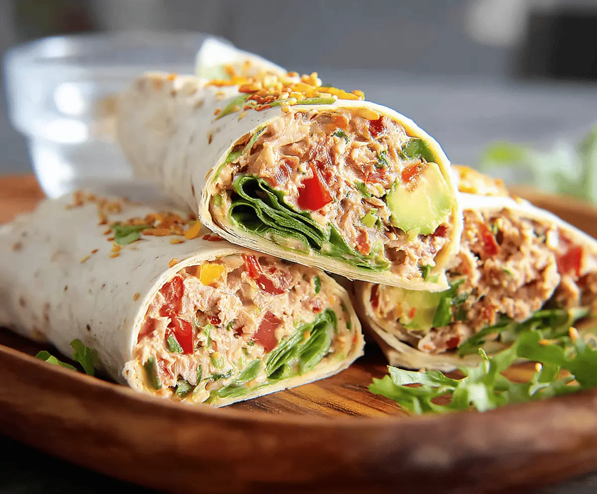 This recipe takes about 10-15 minutes to prepare. There’s no cooking required, so it’s quick to toss together for a tasty lunch or light dinner. The total time includes mixing the tuna filling, chopping veggies, and assembling the wraps.