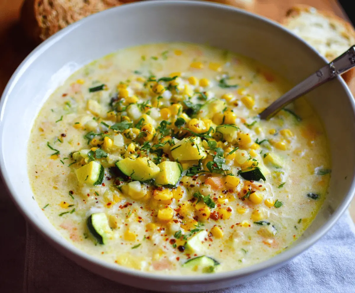 I love making this chowder because it’s so easy to whip up, and it feels like a warm hug in a bowl. The zucchini adds a gentle freshness that balances the sweetness of the corn perfectly. I usually toss in some herbs like thyme or parsley to give it a little extra pop without overwhelming the natural flavors.